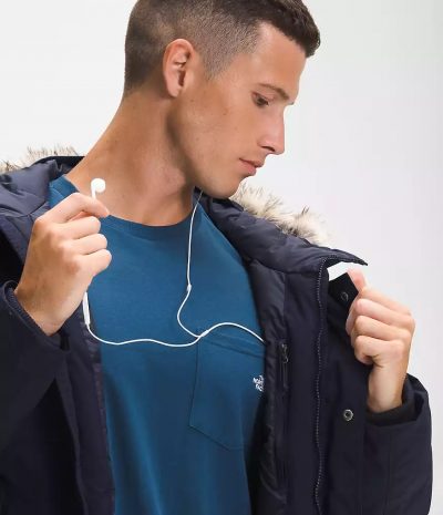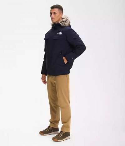 - Adjustable hood with drawcord and removable faux-fur trim