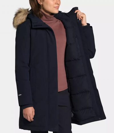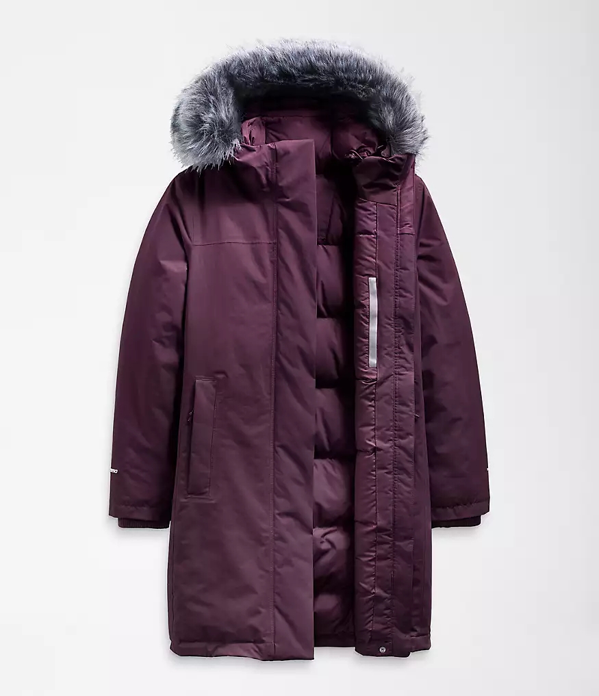 - Removable, fully adjustable hood with removable faux-fur ruff