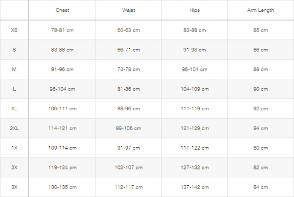 Size Chart (in/cm)