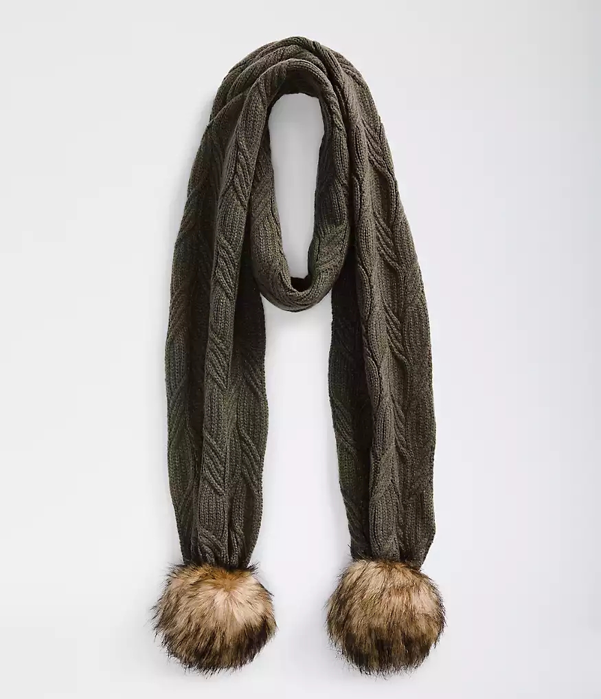 The Oh-Mega Fur Pom Scarf, with a cable-knit texture and oversized pom, brings the après ski party wherever you go.