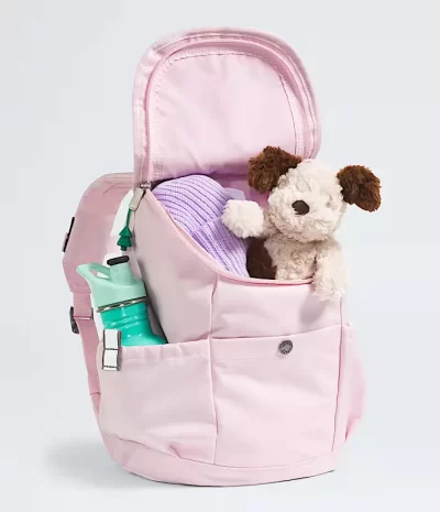 - Top-loader construction with a fleece lid and shaped zipper pulls make the pack fun and easy to identify